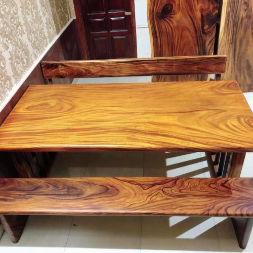 Ưu Điểm: Vân gỗ đẹp nhất trong các loại gỗ tự nhiên, mỗi bàn có một vẻ đẹp tự nhiên khác nhau không đụng hàng, mặt bàn nguyên tấm áp dụng công nghệ xấy hoàn thiện chống mối mọt, không bị cong vênh theo thời gian, dễ lau chùi, chống nước cực tốt, càng dùng càng đẹp giá trị tăng theo thời gian.