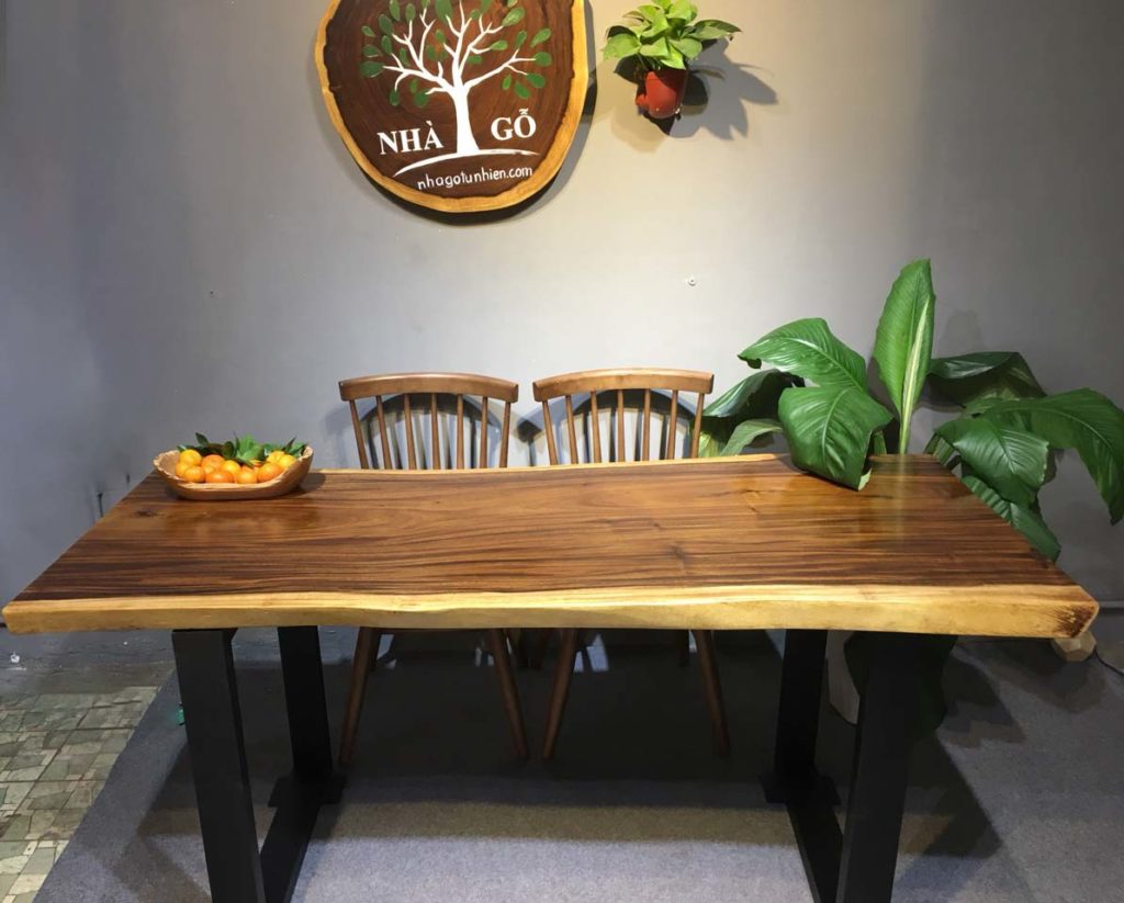 Bàn ăn gỗ tự nhiên me tây nguyên tấm có giá tuỳ theo từng mặt, nói chung giá phụ thuộc vào 2 biến số chính đó là,