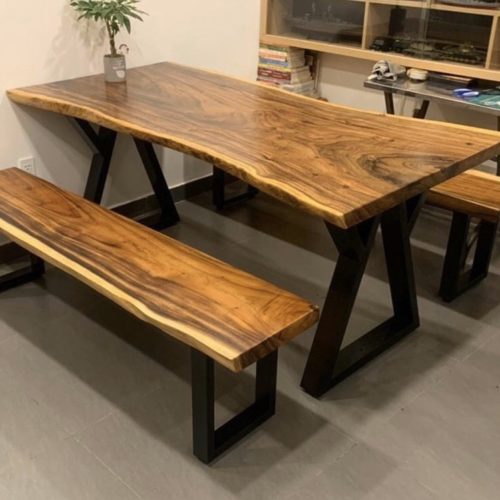 Bàn ăn gỗ tự nhiên me tây nguyên tấm có giá tuỳ theo từng mặt, nói chung giá phụ thuộc vào 2 biến số chính đó là,