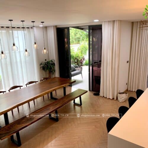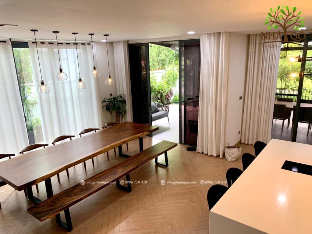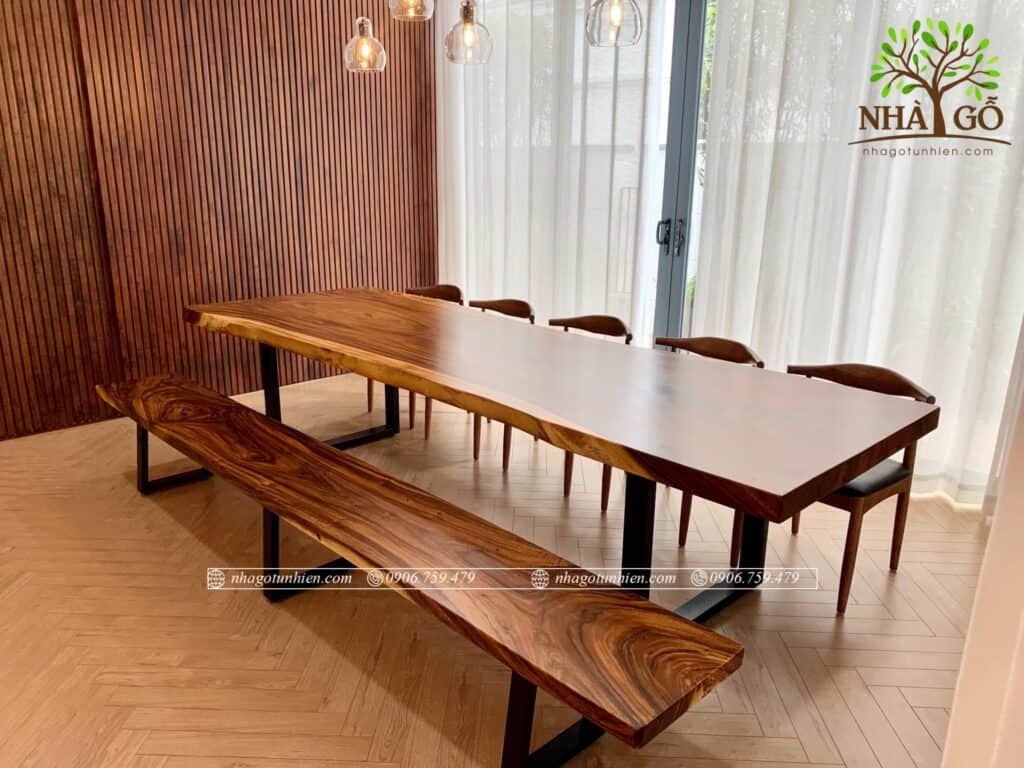 Bàn ăn gỗ tự nhiên me tây nguyên tấm là xu hướng mới trong nội thất chung cư, căn hộ, nhà phố, sở hữu vân gỗ đẹp nhất trong các loại gỗ có thể dễ dàng kết hợp với nhiều loại thiết kế từ hiện đại đến cổ điển, giá trị mặt gỗ tăng theo thời gian, vân gỗ mỗi tấm là duy nhất thể hiện đẳng cấp của gia chủ.