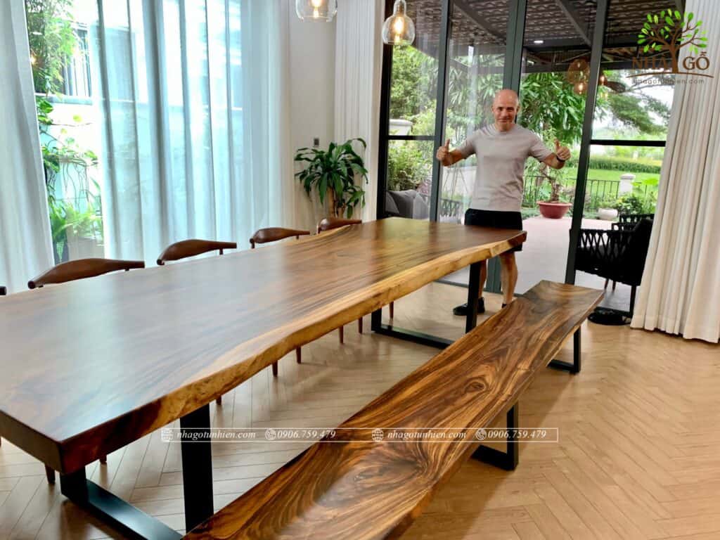 Bàn gỗ me tây nguyên tâm ngoài kích thước đa dạng về chiều dài thì nổi bất hơn với gộ dày của từng tấm gỗ. Độ dày từ 5cm.7cm.10cm độ dày càng cao mức giá càng cao, mỗi mẫu mã đều mang lại cách nhìn và sự khác biết, sang trọng khác nhau.
