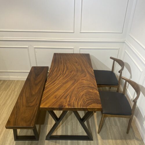 Ưu Điểm: Vân gỗ đẹp nhất trong các loại gỗ tự nhiên, mỗi bàn có một vẻ đẹp tự nhiên khác nhau không đụng hàng, mặt bàn nguyên tấm áp dụng công nghệ xấy hoàn thiện chống mối mọt, không bị cong vênh theo thời gian, dễ lau chùi, chống nước cực tốt, càng dùng càng đẹp giá trị tăng theo thời gian.