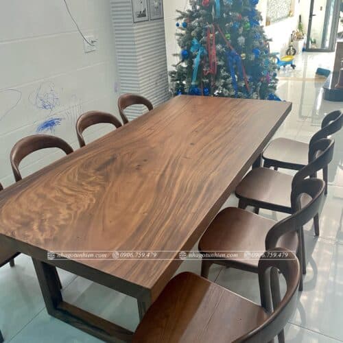 Ưu Điểm: Vân gỗ đẹp nhất trong các loại gỗ tự nhiên, mỗi bàn có một vẻ đẹp tự nhiên khác nhau không đụng hàng, mặt bàn nguyên tấm áp dụng công nghệ xấy hoàn thiện chống mối mọt, không bị cong vênh theo thời gian, dễ lau chùi, chống nước cực tốt, càng dùng càng đẹp giá trị tăng theo thời gian.