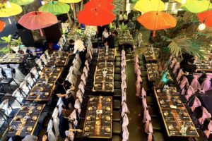 Nội Thất Nhà Gỗ Tự Nhiên hân hạnh cung cấp mặt bàn gỗ me tây nguyên tấm cho nhà hàng lẩu cua đồng địa chỉ 65 Thăng Long, F.14, Q.Bình Tân. Mặt bàn 1m4x60cm ghép đôi cùng ghế băng nệm[...]