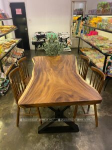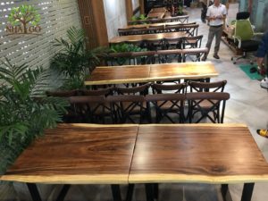 Sản phẩm bàn ghế gỗ tự nhiên nguyên tấm phục vụ nhà hàng, quán ăn, khách sạn, quán coffee thiết kế thi công hoàn thiện. Mặt bàn gỗ nguyên tấm kết hợp chân sắt tạo điểm nhấn cho không gian[...]