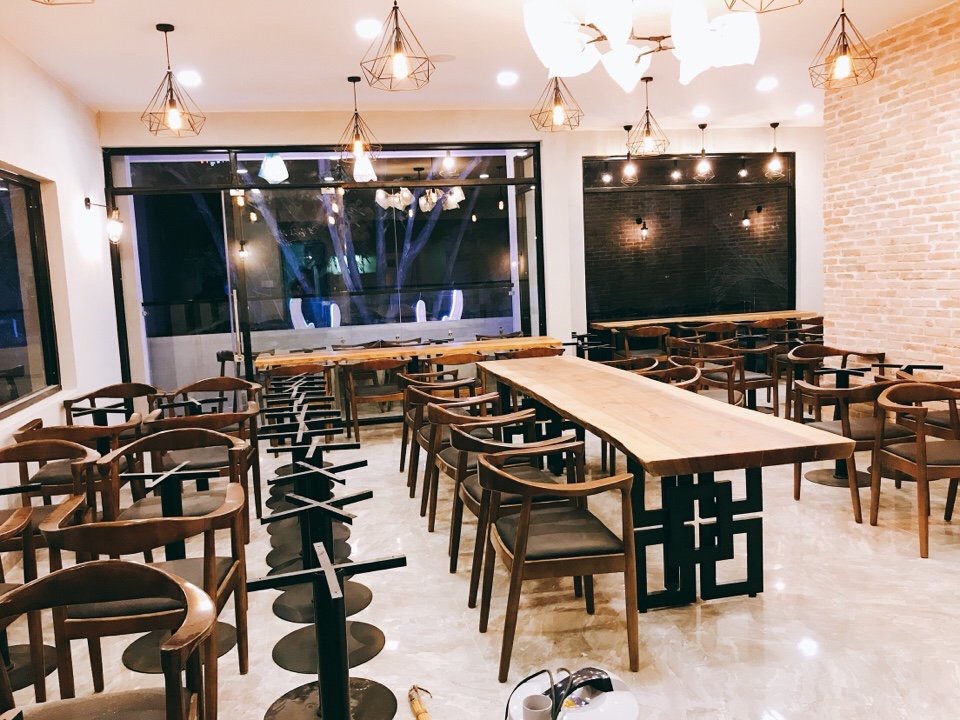Bàn gỗ tự nhiên nguyên tấm đang là xu hướng nội thất mới được nhiều khách hàng ưa chuộng bởi vẻ đẹp, nét thẩm mỹ và phong cách mới lạ sang trọng từ chất liệu gỗ tự nhiên mang lại. Một trong nhưng không gian được đánh giá cao về nét đẹp, sự tinh tế và hài hòa, dự án coffee 3 lầu bố trí toàn bộ bằng mặt bàn gỗ nguyên khối phối hợp với ghế gỗ lót nệm.